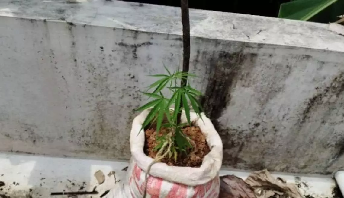 ടെറസിൽ ചാക്കുകളിൽ നട്ടു വളർത്തിയ രണ്ടു കഞ്ചാവു ചെടികളാണ് അപ്രതീക്ഷിതമായി ഇവിടെ എത്തിയ പഞ്ചായത്ത് ജീവനക്കാർ കാണാനിടയായത്. തുടർന്ന് പോലീസിൽ വിവരം അറിയിക്കുകയായിരുന്നു.