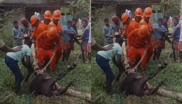 കുടിവെള്ളത്തിനായി ഉപയോഗിക്കുന്ന കിണറ്റിൽ ഉഗ്ര ശബ്ദം; നോക്കുമ്പോൾ കൂറ്റൻ ഒരു അതിഥി; പാലക്കാട് പോത്തിനെ രക്ഷപ്പെടുത്തി അഗ്നിരക്ഷാസേന