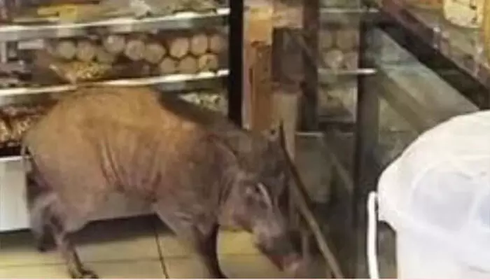 താമരശ്ശേരിയിൽ പട്ടാപകൽ ബേക്കറിയിലേക്ക് പാഞ്ഞുകയറി കാട്ടുപന്നി; പലഹാരക്കൂടുകള്ക്കിടയില് കുടുങ്ങിയ അപ്രതീക്ഷിത അതിഥിയെ കണ്ട് പരിഭ്രാന്തരായി ആളുകൾ