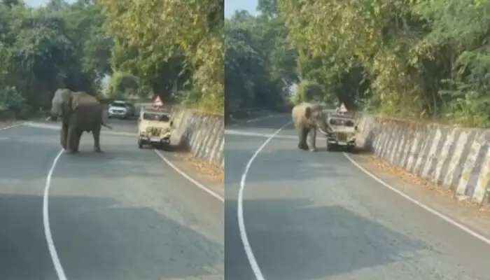തുമ്പികൈ വീശി രണ്ടുംകല്പിച്ച് പാഞ്ഞെത്തി; ഒറ്റയാന്റെ വരവ് കണ്ട് ജീപ്പിലെ യാത്രക്കാർ അടക്കം ഇറങ്ങിയോടി; എല്ലാവരും രക്ഷപ്പെട്ടത് ഭാഗ്യം കൊണ്ട്; കൊമ്പന്റെ പരിഭ്രാന്തിയിൽ നടുക്കം