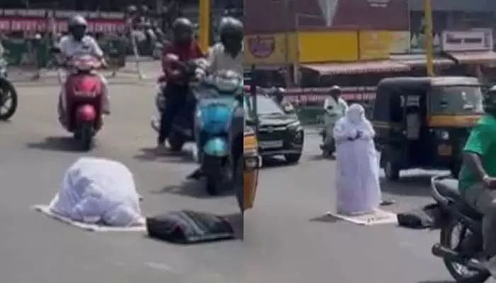 തിരക്കേറിയ റോഡില് സ്ത്രീയുടെ നിസ്കാരം; കസ്റ്റഡിയിലെടുത്ത് പോലീസ്; സംഭവം പാലക്കാട്