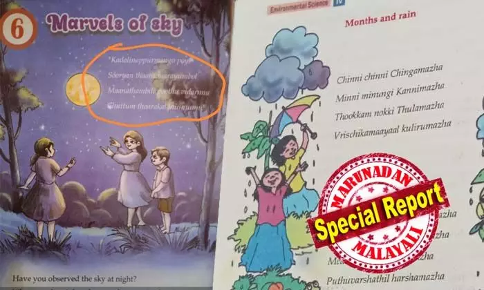 നാലാം ക്ലാസിലെ ഇ.വി.എസ് പാഠപുസ്തകത്തില് 'മംഗ്ലീഷ്'; മലയാളം പദ്യം അച്ചടിച്ചത് ഇംഗ്ലീഷില്; മലയാളത്തിലെ പരിസരപഠനം ഇംഗ്ലീഷ് മീഡിയത്തിലേക്ക് മാറ്റിയപ്പോള് മംഗ്ലീഷാക്കി വിദ്യാര്ഥികള്ക്ക് പഠിക്കാന് നല്കി എസ്.സി.ഇ.ആര്.ടി; ഇതെന്ത് പാഠ്യ പദ്ധതിയെന്ന ചോദ്യം ബാക്കി