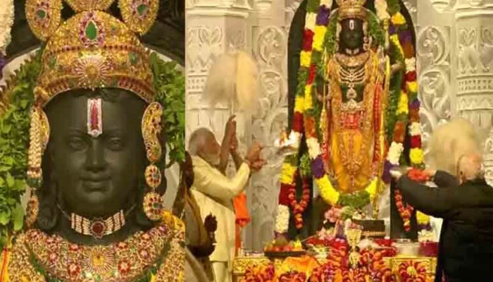 ഡൽഹിയിൽ നിന്നും ഹെലിക്കോപ്ടറിൽ അയോദ്ധയിലെത്തിയ പ്രധാനമന്ത്രി സരയൂ നദിക്കരയിൽ ജലാഭിഷേകത്തിന് ശേഷം ഹനുമാൻ ഗഡിയിൽ ദർശനവും നടത്തിയ ശേഷമാണ് പ്രതിഷ്ഠാ ചടങ്ങുകളിലെത്തിയത്. 11 നാൾ നീണ്ട വ്രതത്തിനും വിവിധ ക്ഷേത്രങ്ങളിൽ ദർശനം നടത്തിയതിനു ശേഷമാണ് പ്രധാനമന്ത്രി നരേന്ദ്ര മോദി അയോദ്ധ്യയിലെത്തിയത്.