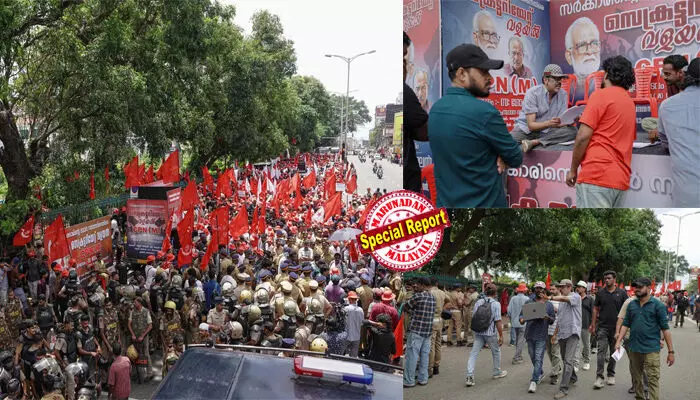 തിരുവനന്തപുരം: പതിവ് തെറ്റിച്ച് 'ഞായറാഴ്ചയും' സെക്രട്ടറിയേറ്റിന് മുന്നില് സംഘര്ഷം. ആയിരങ്ങളാണ് പ്രതിഷേധ മുദ്രാവാക്യവുമായി സെക്രട്ടറിയേറ്റിന്റെ സമര ഗേറ്റിലെത്തിയത്. കണ്ടവരെല്ലാം ഞായറാഴ്ചയിലെ സെക്രട്ടറിയേറ്റ് കണ്ട് അമ്പരന്നു. സാധാരണ സമരമെന്ന് കേട്ടാല് ആരും സെക്രട്ടറിയേറ്റിന് മുന്നിലെത്തില്ല. എന്നാല് ഒക്ടോബര് അഞ്ചിനുള്ള സെക്രട്ടറിയേറ്റ് വളയല് അറിഞ്ഞ് ഒരു ഭയവുമില്ലാതെ തിരുവനന്തപുരത്തുകാര് ആവേശത്തില് തന്നെ അവിടെ എത്തി. അതായിരുന്നു ഈ സമരത്തിന്റെ പ്രത്യേകതയും.