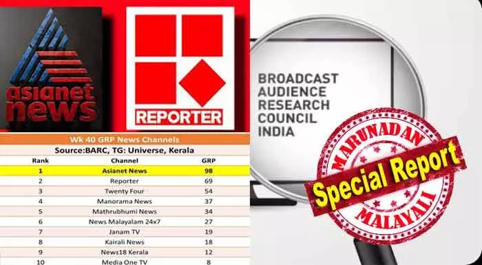 39-ാം ആഴ്ചയിലെ ബാര്ക്ക് ( Broadcast Audience Research Council ) റേറ്റിങ്ങില് 94 പോയിന്റിന്റെ വ്യക്തമായ മേധാവിത്വം ഏഷ്യാനെറ്റ് ന്യൂസിനുണ്ടായിരുന്നു. 40-ാം ആഴ്ചയില് അത് കൂടുകയാണ്. റിപ്പോര്ട്ടറിന് വലിയ ഇടിവുണ്ടായി. 39-ാം ആഴ്ചയില് റേറ്റിങ് കണക്കുകളില് രണ്ടാം സ്ഥാനത്തുള്ള റിപ്പോര്ട്ടര് ചാനലിന് അന്ന് 74 പോയിന്റാണുണ്ടായിരുന്നത്. ഇത്തവണ പോയിന്റ് 69 ആയി. മൂന്നാം സ്ഥാനത്ത് 40-ാം ആഴ്ചയിലുള്ളത് ട്വന്റി ഫോര് ന്യൂസായിരുന്നു. ഒരു പോയിന്റ് അവര്ക്ക് കൂടി. ഒന്നാമതുള്ള ഏഷ്യനെറ്റ് ന്യൂസിനേക്കാള് ഏറെ പിന്നിലാണ് ട്വന്റിഫോര് എന്നതാണ് വസ്തുത.