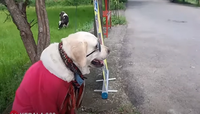 തൃശൂർ: ബെല്ലയെ അറിയില്ലേ? നല്ല മോടിയായി വസ്ത്രം ധരിച്ച് കൂളിങ് ഗ്ലാസും വച്ച് എല്ലാവരോടും ഇണങ്ങുന്ന നായ. ബുദ്ധിമതിയായ ഈ നായയുടെ ഉടമസ്ഥനെയും മിക്കവർക്കും അറിയാം. ടൂറിസം പൊലീസ് ഉദ്യോഗസ്ഥനായിരുന്ന രഘു പി എസ്. കഴിഞ്ഞ വർഷം ലഹരിവിരുദ്ധ പ്രചാരണവുമായി ഇന്ത്യ മുഴുവൻ 45 ദിവസം കൊണ്ട് 20000 കിലോമീറ്റർ സഞ്ചരിച്ചിട്ടുണ്ട് ബെല്ല. ഇപ്പോൾ, തൃശ്ശൂരിൽ നിന്നും അയോദ്ധ്യയിലെ രാമക്ഷേത്രത്തിലേക്ക് പുറപ്പെടുന്ന സംഘത്തോടൊപ്പം ബെല്ലയും ഉണ്ട്.
