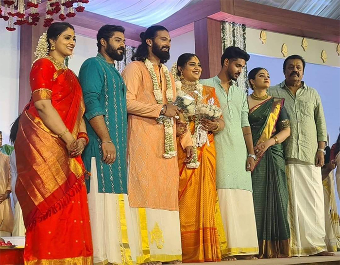 പച്ച നിറത്തിലുള്ള ഷർട്ടും കസവ് മുണ്ടുമായിരുന്നു സുരേഷ്ഗോപിയുടെ വേഷം. ഓറഞ്ച് നിറത്തിലെ പട്ടുസാരിയാണ് രാധിക അണിഞ്ഞിരുന്നത്. മലയാളത്തിന്റെ സൂപ്പർതാരങ്ങളായ മമ്മൂട്ടിയും മോഹൻലാലും കുടുംബസമേതമാണ് വിവാഹത്തിൽ പങ്കെടുത്തത്. നടന്മാരായ ജയറാം, ബിജു മേനോൻ, ദിലീപ്, നടിമാരായ ഖുശ്ബു, കാവ്യാ മാധവൻ, പാർവതി, രചന നാരായണൻ കുട്ടി, സരയു, സംവിധായകരായ ഹരിഹരൻ, ഷാജിെൈ കലാസ്, നിർമ്മാതാവ് സുരേഷ് കുമാർ തുടങ്ങിയവർ ചടങ്ങിനെത്തി.