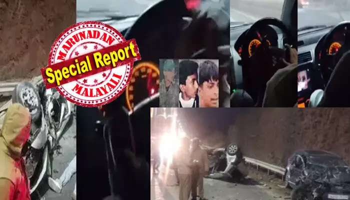 അപകടത്തിന്റെ ഏകദേശം 9 മിനിട്ടോളം ദൈർഘ്യമുള്ള വീഡിയോ ദൃശ്യങ്ങളാണ് പുറത്തുവന്നിരിക്കുന്നത്. അപകടത്തിൽ മരിച്ച ഷേർ മുഹമ്മദ് (19) ആണ് വാഹനം ഓടിച്ചിരുന്നത്. ഇയാൾ പുകവലിച്ചുകൊണ്ട് മണിക്കൂറിൽ 120 കിലോമീറ്റർ വേഗതയിൽ അലക്ഷ്യമായി കാറോടിക്കുന്നത് വീഡിയോയിൽ വ്യക്തമാണ്. കാറിനുള്ളിൽ ഉച്ചത്തിൽ സംഗീതം വെച്ചാണ് ഇവർ യാത്ര ചെയ്തത്. മുൻസീറ്റിലിരുന്ന ഒരാൾ മൊബൈലിൽ വേഗത 120 കിലോമീറ്ററിൽ എത്തുന്നത് പകർത്തുന്നതും കാണാം. അപകടത്തിന് നിമിഷങ്ങൾക്ക് മുമ്പ് വേഗത കുറയ്ക്കാൻ ഒരാൾ ആവശ്യപ്പെടുന്നതും ദൃശ്യങ്ങളിലുണ്ട്.