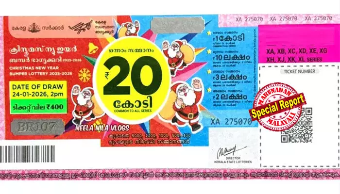 2026 വര്ഷം നറുക്കെടുക്കുന്ന ആദ്യ ബംപര് ലോട്ടറിയാണ് ക്രിസ്മസ്-ന്യൂ ഇയര് ബംപര്. ഒന്നാം സമ്മാനത്തിനു പുറമെ, മൂന്നാം സമ്മാനം, നാലാം സമ്മാനം, അഞ്ചാം സമ്മാനം തുടങ്ങി നിരവധി സമ്മാനങ്ങളും നറുക്കെടുപ്പില് പ്രഖ്യാപിച്ചു. കേരള ലോട്ടറി ചരിത്രത്തിലെ വലിയ സമ്മാനത്തുകകളില് ഒന്നായ 20 കോടി നേടിയ ഭാഗ്യശാലി ആരാണെന്ന് ഉറ്റുനോക്കുകയാണ് ലോട്ടറി ലോകം.