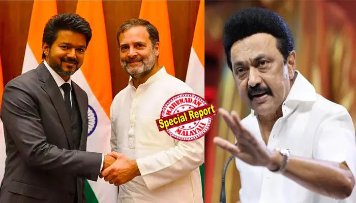 വിജയിന്റെ പാര്ട്ടിയായ തമിഴക വെട്രി കഴകവുമായി (TVK) ഭാവിയില് ഒരു രാഷ്ട്രീയ ധാരണയ്ക്ക് കോണ്ഗ്രസ് തയ്യാറെടുക്കുന്നുണ്ടോ എന്ന സംശയമാണ് രാഹുലിന്റെ എക്സ് പോസ്റ്റിലൂടെ ഉയരുന്നത്. വിജയിന് യുവാക്കള്ക്കിടയിലുള്ള വന് സ്വാധീനം കോണ്ഗ്രസിന് സംസ്ഥാനത്ത് പുതിയ ഊര്ജ്ജം നല്കുമെന്ന് പാര്ട്ടിക്കുള്ളിലെ ഒരു വിഭാഗം വിശ്വസിക്കുന്നു.