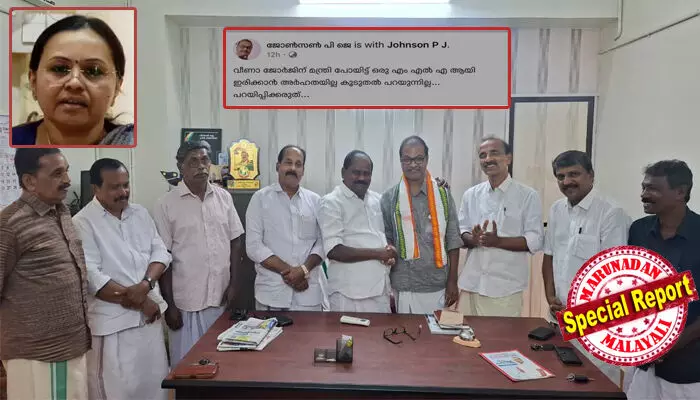 ആരോഗ്യമന്ത്രി വീണാ ജോര്ജിനെ വിമര്ശിച്ച് ഫേസ്ബുക്ക് പോസ്റ്റിട്ടതിന് നടപടി നേരിട്ട നേതാവാണ് പി ജെ ജോണ്സണ്. കോട്ടയം മെഡിക്കല് കോളേജ് ആശുപത്രിയില് കെട്ടിടം തകര്ന്നുവീണ് തലയോലപ്പറമ്പ് സ്വദേശിനി ബിന്ദു മരിച്ച സംഭവത്തിലായിരുന്നു മന്ത്രിയെ വിമര്ശിച്ച് ജോണ്സണ് പി ജെ പോസ്റ്റിട്ടത്. മന്ത്രിയെന്നല്ല, എംഎല്എ ആകാന് പോലും മന്ത്രി വീണയ്ക്ക് യോഗ്യതയില്ല എന്നായിരുന്നു പോസ്റ്റ്. ഇതിനെതുടര്ന്ന് ജോണ്സണെ മൂന്ന് മാസത്തേക്ക് പാര്ട്ടിയില് നിന്നും സസ്പെന്ഡ് ചെയ്തിരുന്നു. എന്നാല് നടപടി വകവെക്കാതെ ജോണ്സണ് വീണ്ടും പോസ്റ്റിട്ടിരുന്നു. 'ഗര്വ്വികളോട് കൂടെ കവര്ച്ച പങ്കിടുന്നതിനേക്കാള് താഴ്മയുള്ളവരോട് കൂടെ താഴ്മയുള്ളവനായി ഇരിക്കുന്നതാണ് നല്ലത്' എന്നായിരുന്നു പോസ്റ്റ്.