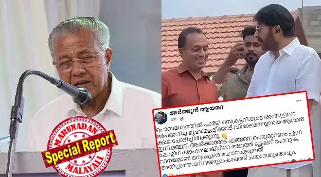 എന്നാല് മുഖ്യമന്ത്രിയുടെ ഈ നീക്കം സിപിഎമ്മിനുള്ളില് വലിയ പൊട്ടിത്തെറിക്കാണ് വഴിമരുന്നിട്ടിരിക്കുന്നത്. പാര്ട്ടിയുടെ സൈബര് പോരാളികള് ഒരുവശത്ത് മമ്മൂട്ടിയെ കടന്നാക്രമിക്കുമ്പോള്, മറുഭാഗത്ത് മുഖ്യമന്ത്രി തന്നെ നടനെ വാനോളം പുകഴ്ത്തി രംഗത്തെത്തിയത് അണികളുടെ അമര്ഷത്തിന് ഇടയാക്കിയത്.