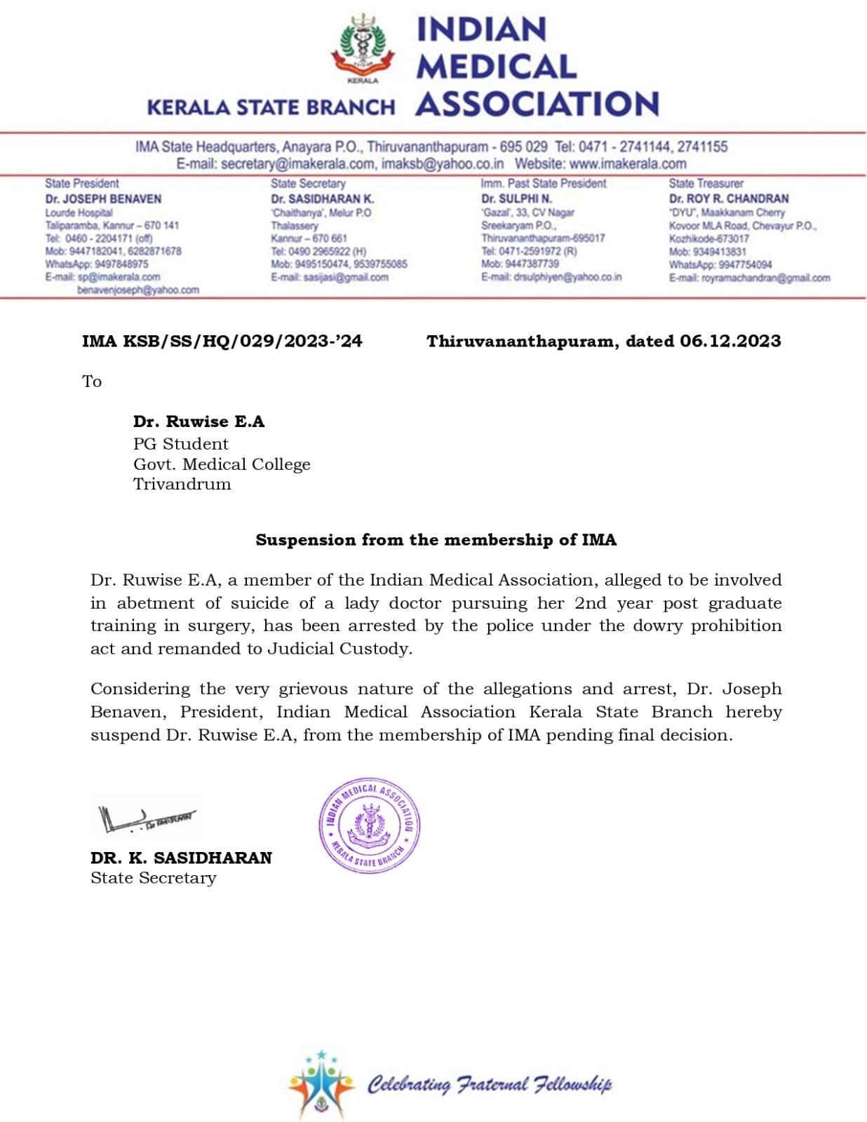 ഡോക്ടർമാർക്കിടയിലും ആരോഗ്യ പ്രവർത്തകർക്കിടയിലും പൊതു സമൂഹത്തിലും വർദ്ധിച്ചുവരുന്ന ആത്മഹത്യ പ്രവണതയ്ക്കെതിരെ ക്രിയാത്മകമായ പ്രവർത്തനങ്ങൾ തുടരാൻ ഇന്ത്യൻ മെഡിക്കൽ അസോസിയേഷൻ പ്രതിജ്ഞാബദ്ധം.