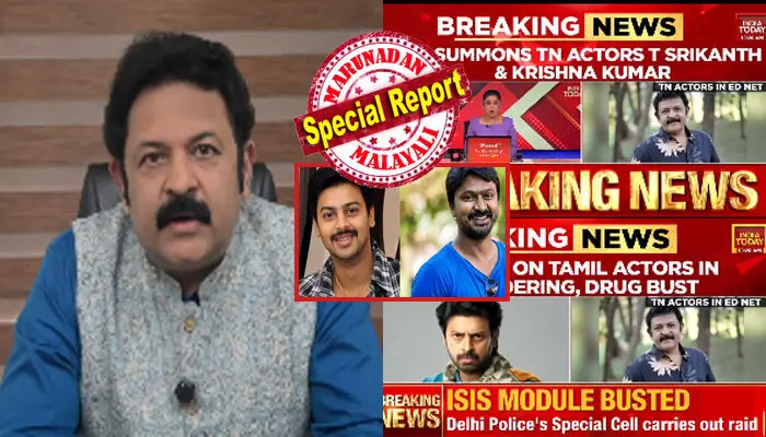 'ഇന്ത്യ ടുഡേ' ടിവിയ്ക്ക് പറ്റിയത് വൻ അബദ്ധം; തമിഴ് സിനിമയെ ഞെട്ടിച്ച മയക്കുമരുന്ന് കേസുമായി ബന്ധപ്പെട്ട വാർത്തയിൽ ബിജെപി നേതാവ് കൃഷ്ണകുമാറിന്റെ ചിത്രം; മാനനഷ്ടത്തിന് നോട്ടീസ് അയച്ച് നേതാവ്; ചാനലിന്റെ വിശദീകരണം ഇങ്ങനെ