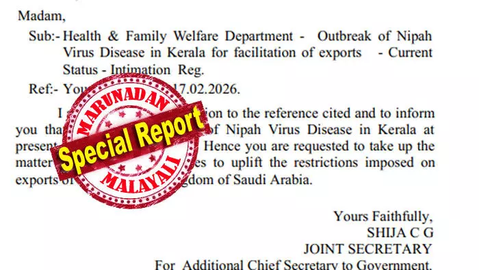 കേന്ദ്ര വാണിജ്യ വ്യവസായ മന്ത്രാലയത്തിന് കീഴിലുള്ള റീജിയണല് ഹെഡിനാണ് കേരളം കത്തയച്ചത്. 2026 ഫെബ്രുവരി 18-നാണ് അഡീഷണല് ചീഫ് സെക്രട്ടറിക്ക് വേണ്ടി ജോയിന്റ് സെക്രട്ടറി ഷീജ സി.ജി. ഈ കത്ത് കൈമാറിയത്. കേരളത്തില് ഇപ്പോള് നിപ്പാ വൈറസ് ബാധ റിപ്പോര്ട്ട് ചെയ്തിട്ടില്ല. നിപ്പയുണ്ടെന്ന് വന്ന വാര്ത്തകള് വെറും വ്യാജമാണ്. ഈ സാഹചര്യത്തില് സൗദി അറേബ്യ ഏര്പ്പെടുത്തിയ നിയന്ത്രണങ്ങള് നീക്കാന് ബന്ധപ്പെട്ട അധികൃതരുമായി ചര്ച്ച നടത്തി അടിയന്തര നടപടി സ്വീകരിക്കണം എന്നതാണഅ ആവശ്യം.