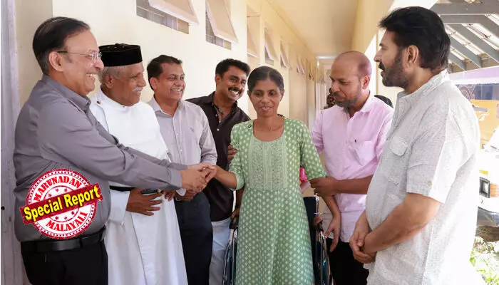 കൊച്ചി: സ്വപ്നമാണോ യാഥാര്ഥ്യമാണോ എന്ന് സംശയിച്ച സന്ധ്യയോട് മമ്മൂട്ടിയുടെ സ്നേഹാന്വേഷണം: 'ഇപ്പോള് എങ്ങനെ ഉണ്ട്?'. നീറുന്ന മുറിവുകള് സമ്മാനിച്ച മണ്ണിടിച്ചിലിന്റെ വേദനയെ അല്പനേരത്തേക്കെങ്കിലും മറന്ന് കൃത്രിമക്കാലില് എഴുന്നേറ്റുനിന്ന് സന്ധ്യ പറഞ്ഞു: 'നടന്നു തുടങ്ങി'. പിന്നെ മമ്മൂട്ടി സന്ധ്യയുടെ കൈപിടിച്ചു. ആ മനസ്സിലെ നീറ്റല് തിരിച്ചറിഞ്ഞ് മമ്മൂട്ടി പറഞ്ഞു: 'ഇനി വീടിന്റേയും സ്ഥലത്തിന്റേയും കാര്യമല്ലേ..അതും നടക്കും...ഉറപ്പ്..' സന്ധ്യയുടെ മുഖത്ത് ആശ്വാസത്തിന്റെ തെളിച്ചം.