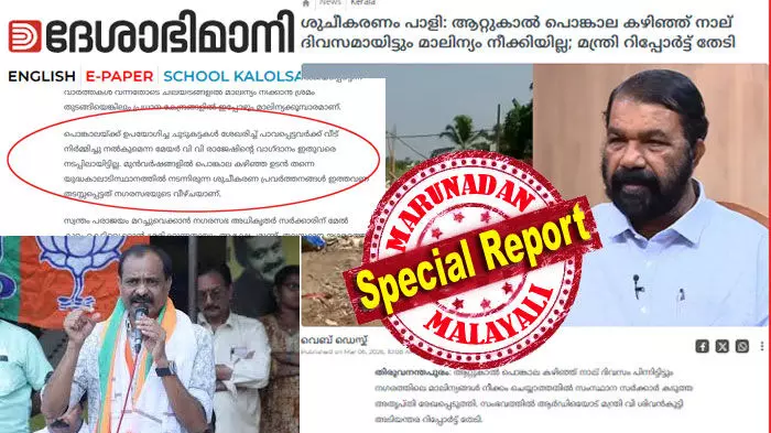 ഈ പോസ്റ്റ് ദേശാഭിമാനി വിശദമായി വാര്ത്തയാക്കി. ശുചീകരണം പാളി: ആറ്റുകാല് പൊങ്കാല കഴിഞ്ഞ് നാല് ദിവസമായിട്ടും മാലിന്യം നീക്കിയില്ല; മന്ത്രി റിപ്പോര്ട്ട് തേടി-ഇതായിരുന്നു തലക്കെട്ട്. ഈ വാര്ത്തയ്ക്കുള്ളിലാണ് പൊങ്കാലയ്ക്ക് ഉപയോഗിച്ച ചുടുകട്ടകള് ശേഖരിച്ച് പാവപ്പെട്ടവര്ക്ക് വീട് നിര്മ്മിച്ചു നല്കുമെന്ന മേയര് വി വി രാജേഷിന്റെ വാഗ്ദാനം ഇതുവരെ നടപ്പിലായിട്ടില്ലെന്ന് ദേശാഭിമാനി എഴുതുന്നത്. മുന്വര്ഷങ്ങളില് പൊങ്കാല കഴിഞ്ഞ ഉടന് തന്നെ യുദ്ധകാലാടിസ്ഥാനത്തില് നടന്നിരുന്ന ശുചീകരണ പ്രവര്ത്തനങ്ങള് ഇത്തവണ തടസ്സപ്പെട്ടത് നഗരസഭയുടെ വീഴ്ചയാണെന്നും ദേശാഭിമാനി പറയുന്നു. എങ്ങനേയും മേയറെ താറടിക്കുകയാണ് ഈ വാര്ത്തയുടെ ലക്ഷ്യമെന്ന് വ്യക്തം. മല്ലികാ സുകുമാരനെ പോലുള്ളവര് പ്രകീര്ത്തിച്ച മേയറുടെ ഇടപെടലിനെ കരിവാരി തേയ്ക്കുകയാണ് ലക്ഷ്യമെന്ന് വ്യക്തം.