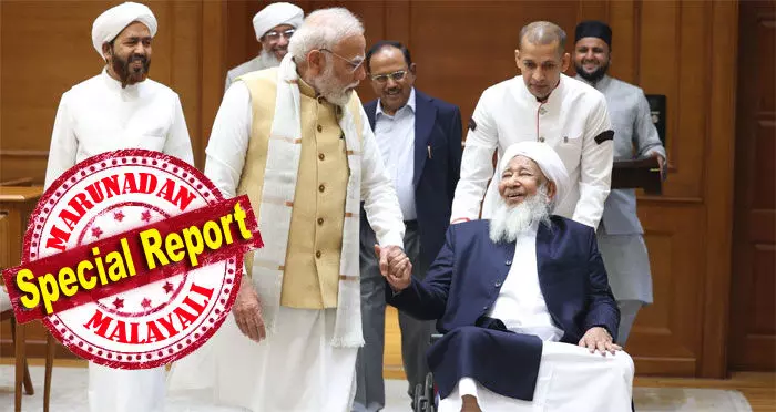 കേരളത്തിലെ പ്രബല സുന്നി വിഭാഗം നേതാവ് കാന്തപുരം എ.പി. അബൂബക്കര് മുസലിയാരെ 'ദേശീയ മുസ്ലിം' മുഖമായി അംഗീകരിക്കുകയാണ് പ്രധാനമന്ത്രി നരേന്ദ്ര മോദി. മേദിയും കാന്തപുരവും നടത്തിയ കൂടിക്കാഴ്ച കേരള രാഷ്ട്രീയത്തില് പുതിയ ചര്ച്ചകള്ക്ക് തിരികൊളുത്തുന്നു. പ്രധാനമന്ത്രിയുടെ ഔദ്യോഗിക വസതിയില് നടന്ന കൂടിക്കാഴ്ചയില് ദേശീയ സുരക്ഷാ ഉപദേഷ്ടാവ് അജിത് ഡോവലിന്റെ സാന്നിധ്യം ഏറെ നിര്ണ്ണായകമായിരുന്നു.