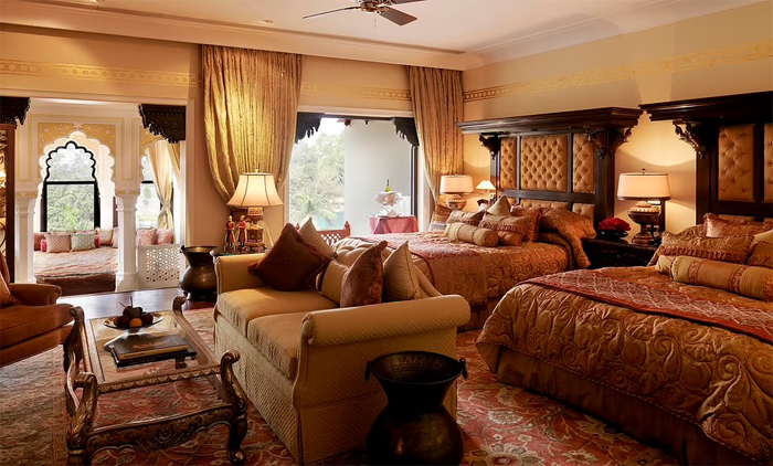 1950 മുതൽ ഹോട്ടലായി മാറിയ ഇവിടെ 78 മുറികളും സ്യുട്ടുകളുമാണ് ഉള്ളത്. രാജാക്കന്മാർ ഒരുകാലത്ത് താമസിച്ചിരുന്ന ഈ മുറികളിൽ ഉറങ്ങുന്നത് നൂറ്റാണ്ടുകളുടെചരിത്രം കൂടിയാണ്. ഇവിടെ താമസിക്കുന്നവർക്ക് രാജകീയമായ ഇന്ത്യൻ വിഭവങ്ങൾ ഒരുക്കി നൽകാൻ സുവർണ മഹൾ റെസ്റ്റോറന്റ് ഉണ്ട്. 18-ാം നൂറ്റാണ്ടിൽ പണിതീർത്ത ഇവിടം ആദ്യം കൊട്ടാരത്തിന്റെ ബോൾറൂം ആയിരുന്നു. ക്രിസ്റ്റൽ ഷാൻഡ്ലിയർ വിളക്കുകൾ പ്രഭ വിതറുന്ന ഇവിടം ഫ്രഞ്ച് വാസ്തു ശില്പ വിദ്യയിലാണ് പണിതിരിക്കുന്നത്.