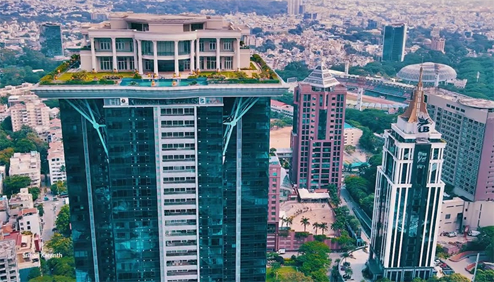 യുണൈറ്റഡ് ബ്രൂവറീസ് ഗ്രൂപ്പ് സ്ഥപകൻ വിട്ടൽ മല്ല്യയുടെ മകൻ വിജയ് മല്ല്യയുടെതാണ് ഈ സൗധം. തന്റെ തറവാട് ഇരുന്ന 4.5 ഏക്കർ സ്ഥലത്ത് നിർമ്മിച്ച യു ബി സിറ്റിയിലെ അംബരചുംബിക്ക് മുകളിലാണ് 20 മില്യൻ ഡോളർ ചെലവഴിച്ച് ഈ സൗധം നിർമ്മിച്ചിരിക്കുന്നത്. ഇന്ത്യയിൽ ആഡംബരത്തിന്റെ അവസാന വാക്കായിരുന്ന വിജയ് മല്ല്യക്ക് പക്ഷെ കടക്കാരും അന്വേഷണ ഏജൻസികളും പിടി മുറുക്കിയതോടെ 2016-ൽ ഇന്ത്യ വിടേണ്ടി വന്നു. വൻ തുകകൾ വായ്പയായി എടുക്കുകയും അത് തിരിച്ചടക്കാതെ വരികയും ചെയ്ത സാഹചര്യത്തിലായിരുന്നു അത്.
