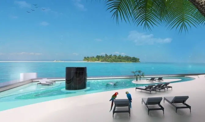 എന്നാൽ, ഏറ്റവും വ്യത്യസ്തവും, സാഹസികവുമായ ഇനം ഷാർക്ക് ഫീഡിങ് എലെവേറ്ററുകളാണ്. നിങ്ങളുടെ ഹെലികോപ്റ്റർ ഇറക്കുവാനുള്ള ഹെലിപാഡും അതോടൊപ്പം നിങ്ങളുടെ ആഡംബര നൗകയോ അന്തർവാഹിനിയോ അടുപ്പിച്ചിടുന്നതിനുള്ള യാർഡും ഇതിൽ സജ്ജീകരിച്ചിട്ടുണ്ട്. അതോടൊപ്പം, ഈ ദ്വീപിൽ ഒറ്റക്കിരിന്ന് മടുപ്പ് നുകരേണ്ടതില്ല. രണ്ട് ബീച്ച് ക്ലബ്ബുകൾ, സമുദ്രാന്തര ഡൈനിങ് സലൂൺ, ഇൻഫിനിറ്റി പൂൾ എന്നിവ നിങ്ങൾക്ക് വിനോദോപാധികളാകും.