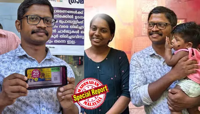 ഇന്നു രാവിലെയും ജോലിയ്ക്കു പോയി; അവധി പറഞ്ഞ് വീട്ടിലെത്തി 25കോടിയുടെ ടിക്കറ്റുമായി ബാങ്കിലേക്ക്; ആ രഹസ്യ വരവില് മാനേജര്ക്ക് അമ്പരപ്പ്; എല്ലാം ആഗ്നേയന്റെ ഐശ്വര്യമെന്ന് ശരത്; അച്ഛന് കോടിപതിയായത് അറിയാതെ ക്യാമറക്കണ്ണുകള് നോക്കി ആ കുഞ്ഞിക്കണ്ണുകള്; തുറവൂര് മണിയാതൃക്കലിലെ ശരതിന്റെ കുടുംബം ആഹ്ലാദത്തിലാണ്