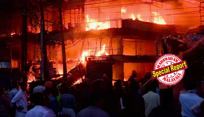ബസ് സ്റ്റാന്ഡിനു സമീപത്തെ കെവി കോംപ്ലക്സിലുള്ള കളിപ്പാട്ട വില്പനശാലയിലാണ് ആദ്യം തീപിടിത്തമുണ്ടായത്. ഇത് സമീപത്തെ മറ്റു കടകളിലേക്കും പടരുകയായിരുന്നു. മൂന്നു നില കെട്ടിടത്തിലെ 10 കടകള് പൂര്ണമായും കത്തിയമര്ന്നു. അതിവേഗം രണ്ടു കോംപ്ലക്സുകളിലെ അന്പതോളം സ്ഥാപനങ്ങളിലേക്ക് തീ പടര്ന്നതായി വ്യാപാരികളുടെ പ്രതിനിധി പറഞ്ഞു.