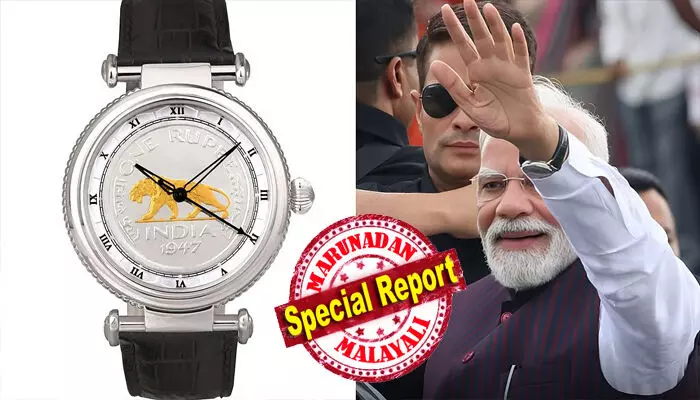 ഡയലിൽ പതിപ്പിച്ചിരിക്കുന്നത് 1947-ലെ ഒരു രൂപ നാണയം; മോദിയുടെ കൈയിലെ സ്റ്റെയിൻലെസ് സ്റ്റീൽ വാച്ചിന് പിന്നിൽ 'മേക്ക് ഇൻ ഇന്ത്യ' സന്ദേശം; 'ആത്മനിർഭർ ഭാരത്'നുള്ള പിന്തുണണയെന്നും പ്രശംസ; ജയ്പൂർ കമ്പനി വാച്ചുകളുടെ വിലയും ഞെട്ടിക്കുന്നത്; വാർത്തകൾ ഇടം നേടി പ്രധാനമന്ത്രിയുടെ 'റോമൻ ബാഗ്'
