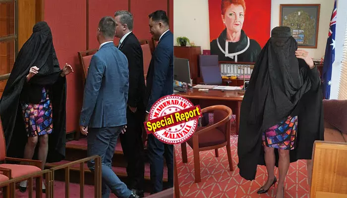 ഓസ്ട്രേലിയന് സെനറ്റില് നാടകീയ രംഗങ്ങള്; വലതുപക്ഷ നേതാവ് പൗളിന് ഹാന്സണ് ബുര്ഖ ധരിച്ചെത്തി; പൗളിന്റെ ശ്രമം ബുര്ഖ നിരോധിക്കാനുള്ള ബില് അവതരണത്തിന്റെ ഭാഗമായി; വംശീയമെന്ന് വിമര്ശനം; സഭ നിര്ത്തിവെച്ചു; 'വണ് നേഷന്' പാര്ട്ടി നേതാവിന് സസ്പെന്ഷന്