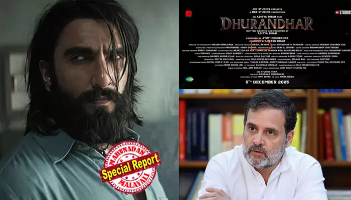 ആദിത്യ ധര് സംവിധാനം ചെയ്ത സ്പൈ ത്രില്ലര് നിറഞ്ഞ തിയേറ്റററുകളില് പ്രദര്ശനം തുടരുമ്പോഴും സിനിമയ്ക്ക് പിന്നില് പ്രൊപ്പഗണ്ട അജണ്ടകളുണ്ട് എന്ന തരത്തില് ആരോപണങ്ങള് ഉയരുന്നുണ്ട്. ഇതിനിടെയാണ് സിനിമയുടെ ടീസറിന്റെ എന്ഡ് ക്രെഡിറ്റില് ചിലരുടെ കണ്ണ് പതിഞ്ഞത്. എക്സിക്യൂട്ടീവ് പ്രൊഡ്യൂസര് ആയി രാഹുല് ഗാന്ധി എന്ന പേര് ഈ ക്രെഡിറ്റ് സീക്വന്സില് കാണാം. ഇത് ലോക്സഭാ പ്രതിപക്ഷ നേതാവ് രാഹുല് ഗാന്ധിയാണെന്നാണ് വ്യാപകമായി പ്രചരിക്കുന്നത്. 'ധുരന്ധര്' ടീസറിന്റെ എന്ഡ് ക്രെഡിറ്റില് രാഹുല് ഗാന്ധി എന്ന് വരുന്ന ഭാഗത്തിന്റെ സ്ക്രീന് ഷോട്ടുകള് വ്യാപകമായി ഇന്റര്നെറ്റില് പ്രചരിക്കുന്നുണ്ട്. 'ഇത് ഏത് രാഹുല്? ഇത് ശരിക്കുമുള്ള ആളാണെന്നാണ് തോന്നുന്നത്,' ഒരു എക്സ് യൂസര് കുറിക്കുന്നു. തെരഞ്ഞെടുപ്പ് പരാജയത്തെ തുടര്ന്ന് രാഹുല് സിനിമാ മേഖലയിലേക്ക് തിരിഞ്ഞു എന്ന ക്യാപ്ഷനുമായി ഈ ചിത്രങ്ങള് പ്രചരിപ്പിക്കുന്നവരേയും സമൂഹമാധ്യമങ്ങളില് കാണാം.
