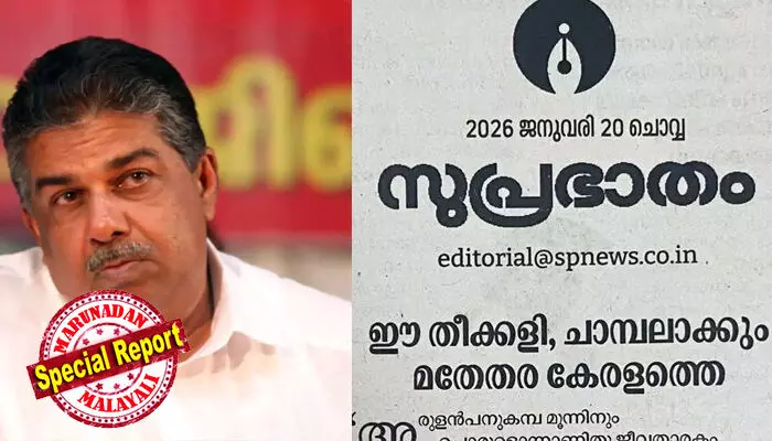 നിയമസഭ തെരഞ്ഞെടുപ്പ് അടുത്ത സമയത്ത് മതേതര മലയാളിയെ തോല്പ്പിച്ച് തുടര്ഭരണത്തിന് കുറുക്കുവഴി തേടുന്നര് നാരായണഗുരുവിനെ ഓര്ക്കേണ്ട കാലംകൂടിയാണിതെന്നും ലേഖനത്തില് പറയുന്നു. വെള്ളാപ്പള്ളി വാ തുറക്കുന്നതേ വര്ഗീയത വിളമ്പാനാണെന്നും മുഖപ്രസംഗം കൂട്ടിച്ചേര്ക്കുന്നു. 'സജി ചെറിയാനെയും എ.കെ ബാലനെയും പോലുള്ള സിപിഎം നേതാക്കള്ക്ക് ഇത്തരം, വിഷംതീണ്ടല് പരാമര്ശങ്ങള് കേരളത്തിന്റെ പൊതുമണ്ഡലത്തില് കയറിനിന്ന് ഇത്രയും ഉച്ചത്തില് പറയാന് എവിടെ നിന്നാണ് ധൈര്യം കിട്ടുന്നത്. 2014ലെ ലോക്സഭാ തെരഞ്ഞെടുപ്പിന് തൊട്ടുമുമ്പ് ഉത്തരേന്ത്യയില് നരേന്ദ്രമോദിയും അമിത്ഷായും ഉള്പ്പെടെയുള്ള സംഘ്പരിവാര് നേതാക്കളും ഇതേ പ്രചാരണവുമായാണ് വോട്ടുതേടിയിറങ്ങിയതെന്ന് ഓര്ക്കണം.' സുപ്രഭാതത്തില് പറയുന്നു.