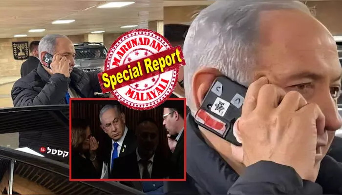 തന്റെ ആഡംബര കാറിന് സമീപം നിന്ന് ഫോണിൽ സംസാരിക്കുന്ന നെതന്യാഹുവിന്റെ കൈവശമുള്ള ഫോണിന്റെ ക്യാമറ ലെൻസുകളും സെൻസറുകളും കട്ടിയുള്ള ചുവന്ന ടേപ്പ് ഉപയോഗിച്ച് മറച്ച നിലയിലായിരുന്നു. പ്രശസ്ത പോഡ്കാസ്റ്റർ മരിയോ നൗഫൽ ഈ ദൃശ്യം പങ്കുവെച്ചുകൊണ്ട് ഉന്നയിച്ച ചോദ്യം ശ്രദ്ധേയമാണ്: "എന്തിനാണ് നെതന്യാഹു തന്റെ ഫോൺ ക്യാമറ ടേപ്പ് ഉപയോഗിച്ച് മറച്ചിരിക്കുന്നത്? അദ്ദേഹം ആരെയാണ് ഭയപ്പെടുന്നത്?"