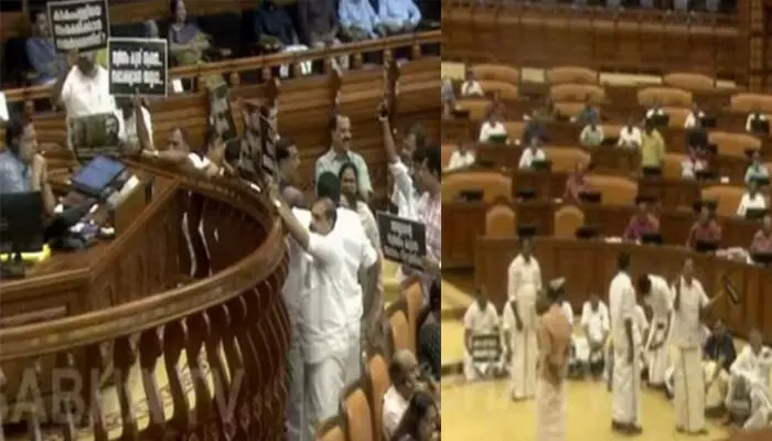 സഭാ നടപടികളുമായി സഹകരിക്കില്ലെന്ന് പ്രഖ്യാപിച്ച പ്രതിപക്ഷം നടുത്തളത്തിലിറങ്ങി മുദ്രാവാക്യം വിളിക്കുകയും പ്രതിഷേധിക്കുകയും ചെയ്തു.