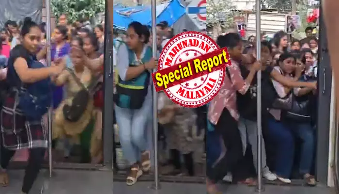 യാത്രക്കാരുടെ ദുരിതം വ്യക്തമാക്കുന്ന നിരവധി വീഡിയോകളാണ് കഴിഞ്ഞ ദിവസങ്ങളിൽ സമൂഹമാധ്യമങ്ങളിൽ പങ്കുവെക്കപ്പെട്ടത്. 'റോസി' എന്ന എക്സ് ഹാൻഡിലിൽ നിന്ന് പങ്കുവെച്ച ഒരു വീഡിയോയിൽ, ട്രെയിൻ സ്റ്റേഷനിൽ പൂർണ്ണമായി നിർത്തുന്നതിന് മുമ്പ് തന്നെ സ്ത്രീകൾ ബോഗികളിലേക്ക് സാഹസികമായി ചാടിക്കയറാൻ ശ്രമിക്കുന്നത് കാണാം. ശരീരത്തിന്റെ മുൻഭാഗത്ത് ബാഗുകളിട്ട്, ഓടുന്ന ട്രെയിനിന്റെ കമ്പിയിൽ തൂങ്ങിക്കിടന്ന് സ്ത്രീകൾ കയറാൻ ശ്രമിക്കുന്നതിനിടെ ഒരാൾക്ക് ബാലൻസ് തെറ്റി താഴേക്ക് വീഴാൻ ശ്രമിക്കുന്നതും ദൃശ്യങ്ങളിലുണ്ട്.