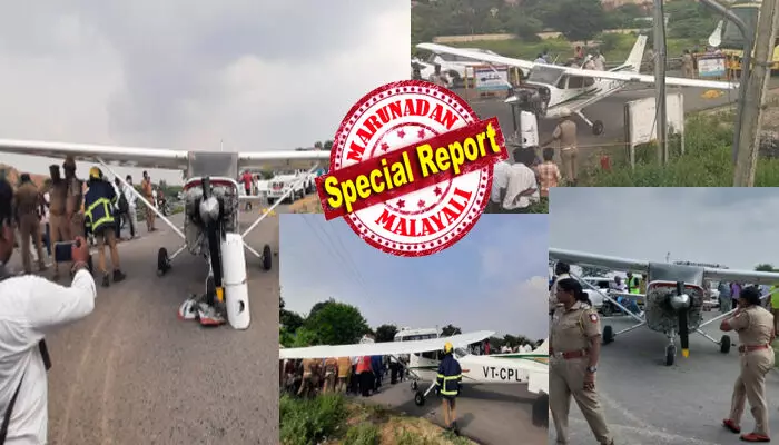 കാതടപ്പിക്കുന്ന രീതിയിൽ ഒരു പ്രൊപ്പല്ലർ ശബ്ദം കേട്ട് നാട്ടുകാർ ഓടിക്കൂടി; പിന്നാലെ ആകാശത്ത് ഭീകര കാഴ്ച; തലങ്ങും വിലങ്ങും താഴ്ന്ന് പറന്ന് പരിഭ്രാന്തി; തിരുച്ചിറപ്പള്ളിയെ വിറപ്പിച്ച് ദേശീയപാതയിൽ ചെറുവിമാനത്തിന് അടിയന്തര ലാൻഡിങ്ങ്; അപകടം പരിശീലനപ്പറക്കലിനിടെ; പൈലറ്റുമാർ രക്ഷപ്പെട്ടത് ഭാഗ്യം കൊണ്ട്