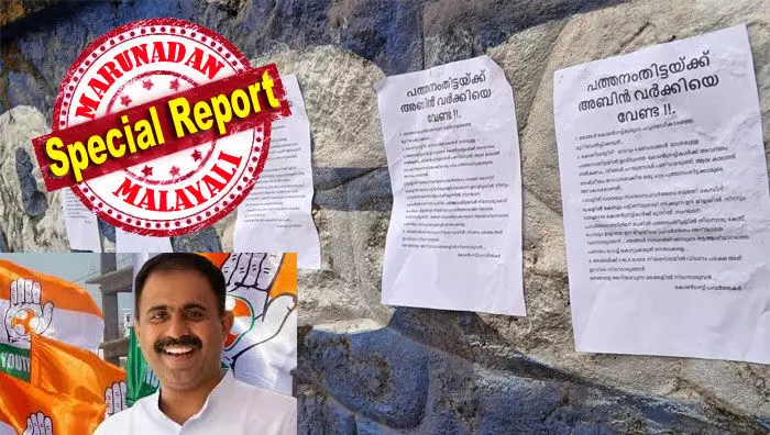 അബിന് വര്ക്കിയെ ആറന്മുളയിലോ റാന്നിയിലോ സ്ഥാനാര്ത്ഥിയായി പരിഗണിക്കുന്നുവെന്ന വാര്ത്തകള്ക്ക് പിന്നാലെയാണ് പ്രതിഷേധം ശക്തമായത്. പത്തനംതിട്ട ഡി.സി.സി ഓഫീസിന്റെ കതകിലും പോസ്റ്ററുകള് പതിച്ചിട്ടുണ്ട്. ഇതിനിടെ, ചില പ്രാദേശിക നേതാക്കള് എ.ഐ.സി.സി ജനറല് സെക്രട്ടറി കെ.സി. വേണുഗോപാലിനെ കണ്ട് പരാതി അറിയിച്ചതായും വിവരമുണ്ട്.