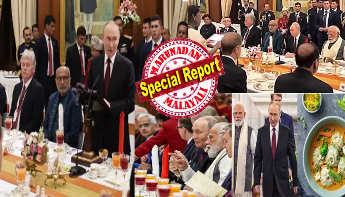 ഉം ഹെൽത്തി ഹെൽത്തി..! റിച്ച് ക്രീമി 'ബീഫ്' പ്രിയനായ പുടിൻ രാഷ്ട്രപതി ഭവനില് എത്തിയ ഉടനെ ആദ്യം ട്രൈ ചെയ്തത് 'മുരിങ്ങയില ചാർ'; പ്രെസിഡന്റിനോടൊപ്പം ഡിന്നർ ടേബിളിൽ കൂട്ടായി മോദിയും; രുചിയോടെ വിളമ്പിയ 'വെജ്' വിഭവങ്ങളിൽ എല്ലാം കൗതുകം; ചട്ട്ണി മുതൽ ഹൈദരാബാദി സ്പെഷ്യൽ പലഹാരങ്ങൾ വരെ; മെനുവിൽ തിളങ്ങിയ ഇന്ത്യൻ ഭക്ഷണങ്ങൾ ഇതാണ്..