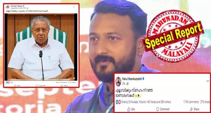 തിരുവനന്തപുരം: തിരുവോണം കഴിഞ്ഞു... ഇന്ന് മൂന്നാം ഓണം.. നാളെ നാലാം ഓണം... അങ്ങനെ മലയാളി ഓണാഘോഷം തുടരുമ്പോള് സോഷ്യല് മീഡിയിയലെ പ്രധാന ചര്ച്ച രണ്ട് ഓണാശംസകള്ക്ക് ഫെയ്സ് ബുക്കില് കിട്ടിയ ലൈക്കാണ്. ആരോപണ വിധേയനായിരുന്നു ഈ ഓണക്കാലത്ത് രാഹുല് മാങ്കൂട്ടത്തില്. അതും വലിയ ആരോപണം. ഈ ആരോപണ വിധേയന് ഫെയ്സ് ബുക്കില് ഇട്ട ഓണാശംസാ പോസ്റ്റിന് കിട്ടിയത് 57കെ ലൈക്കുകളാണ്. 17.6 കെ കമന്റുകളും 278 ഷെയറും. അങ്ങനെ ഓണം സോഷ്യല് മീഡിയയില് തൂക്കുകയാണ് രാഹുല് മാങ്കൂട്ടത്തില്. മറുപക്ഷത്ത് മുഖ്യമന്ത്രി പിണറായി വിജയന് പോലും ഓണാശംസാ പോസ്റ്റിന് കിട്ടിയത് 35കെ ലൈക്ക് മാത്രം. 4.5കെ കമന്റും കിട്ടി. 3.7തകെ ഷെയറും ആ വീഡിയോ പോസ്റ്റിന് ഉണ്ട്. എന്നാല് ലൈക്കും കമന്റും രാഹുലിനാണ് കൂടുതല്. അത് ആവേശത്തോടെ കാണുകയാണ് രാഹുല് മാങ്കൂട്ടത്തില് ഫാന്സ്.