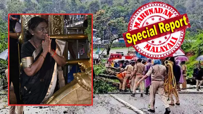 തെരുവു നായ്ക്കള്ക്ക് പോലും രാഷ്ട്രപതിയ്ക്ക് അടുത്ത് എത്താന് കഴിയുമായിരുന്ന പ്രമാടം; രാവിലെ മണ്ണിടിഞ്ഞു വീണു; തിരച്ചു പോകും മുമ്പ് നിലയ്ക്കലില് മരവും കടപുഴകി വീണു; ഓറഞ്ച് അലര്ട്ടില് എടുക്കേണ്ട കരുതലൊന്നും ആരും എടുത്തില്ല; കറുപ്പുടുത്ത് ഇരുമുടിയുമായി അയ്യനെ കണ്ടു മടങ്ങിയത് കല്ലും മുള്ളും നിറഞ്ഞ ഒരുക്കത്തിലൂടെ; ദര്ശന പുണ്യം അനുഗ്രഹമായി; ആര്ക്കെതിരേയും രാഷ്ട്രപതി ഭവന് പരാതി പറയില്ല