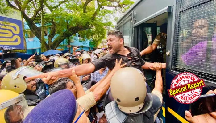 ഇതോടെ പോലിസും നിയന്ത്രണം വിട്ടു. ഇതിനിടെ സന്ദീപ് വാര്യര് ഉള്പ്പെടെ നിരവധി പ്രവര്ത്തകര്ക്ക് ലാത്തിയടിയേറ്റു. പ്രവര്ത്തകരെ അറസ്റ്റു ചെയ്തു വാനില് കയറ്റാന് ശ്രമിച്ചപ്പോള് പ്രതിഷേധം ഉയരുകയും തടയുകയും ചെയ്തു. പിന്നീട് മര്ദ്ദനത്തില് പ്രതിഷേധിച്ച് പ്രവര്ത്തകര് മിനി സിവില് സ്റ്റേഷന് മുന്നില് റോഡില് കുത്തിയിരുന്നു. ഇതു വഴിയുള്ള വാഹന ഗതാഗതവും തടസപ്പെട്ടു. തുടര്ന്ന് ഒരു മണിയോടെ യൂത്ത് കോണ്ഗ്രസ് പ്രവര്ത്തകരെ അറസ്റ്റ് ചെയ്ത് പോലിസ് വാനില് കയറ്റി സ്റ്റേഷനിലേക്ക് കൊണ്ടുപോയി.