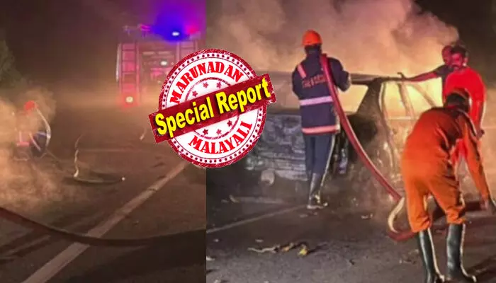 'അയ്യനെ' കാണാൻ യാത്ര തിരിച്ച ഹൈദരാബാദ് സ്വദേശികൾ; പമ്പയ്ക്ക് സമീപമെത്തിയതും വണ്ടിയിൽ നിന്ന് അസാധാരണ ചൂടും പുകയും; ഞൊടിയിടയിൽ പ്രദേശത്തെ നടുക്കി തീഗോളം; ഭക്തർ രക്ഷപെട്ടത് ഭാഗ്യം കൊണ്ട്