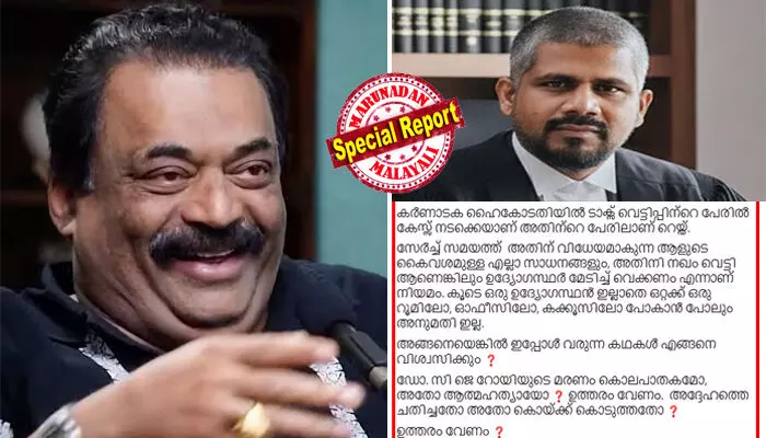 കൊച്ചി ഐടി യൂണിറ്റിന് റെയ്ഡിന് അധികാരമില്ലെന്ന ഹര്ജി ബെംഗളൂരു കോടതി തള്ളി; കോടതി ഉത്തരവുമായി വീഡിയോ ക്യാമറയുമായി എത്തിയ ഉദ്യോഗസ്ഥരുടെ മുന്നില് എങ്ങനെ മരണം നടന്നു? റോയിയുടെ മരണം കൊലപാതകമോ, അതോ ആത്മഹത്യയോ ? അദ്ദേഹത്തെ ചതിച്ചതോ അതോ കൊലയ്ക്ക് കൊടുത്തതോ ? വെളിപ്പെടുത്തലുകളും ചോദ്യങ്ങളുമായി അഡ്വ.ശ്രീജിത്ത് പെരുമന