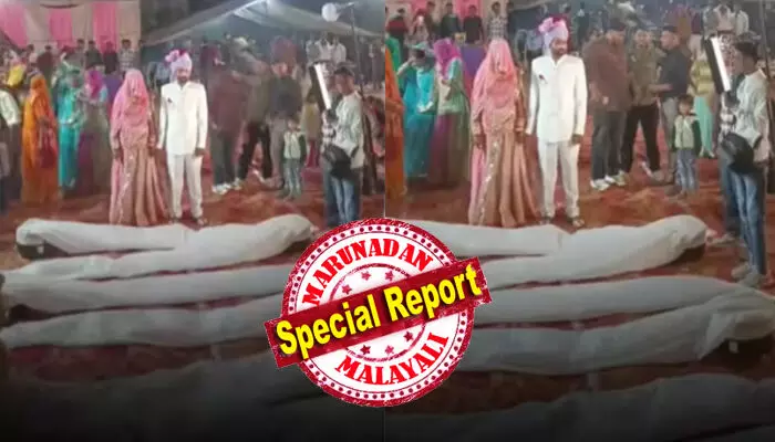 വിവാഹ വേദിയിലേക്ക് കയറാന് ഒരുങ്ങവെ മുമ്പിലായി വെളുത്ത തുണിയില് പൊതിഞ്ഞ രൂപങ്ങൾ; ഒറ്റനോട്ടത്തിൽ മൃതദേഹങ്ങൾക്ക് സമം; വേദി മാറിപ്പോയോയെന്ന് വരെ തോന്നിയ നിമിഷം; ഒടുവിൽ സംഭിച്ചത്; വൈറലായി വധൂവരന്മാരുടെ എൻട്രി