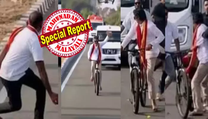 ഇങ്ങനെ പേടിക്കാതെടാ...ഓടിക്കോഡാ..നത്തെ! കന്യാകുമാരി മക്കളെ നേരിൽ കണ്ടതും ഒരു സൈക്കിളും കൊണ്ട് ഇറങ്ങിയ ജനനായകൻ; ഒന്നും നോക്കാതെ സ്പീഡിൽ ചവിട്ടിയതും ആവേശത്തിലായി ആരാധകരും; ഓടിച്ച് പാതി ദൂരമെത്തിയതും റോഡ് വശത്ത് നിന്ന ഒരാളുടെ പ്രവർത്തി; എല്ലാം കണ്ട് ഭയന്നോടി അണ്ണൻ; ട്രോളി കൊന്ന് സോഷ്യൽ മീഡിയ; രക്ഷകന് പറ്റിയത്