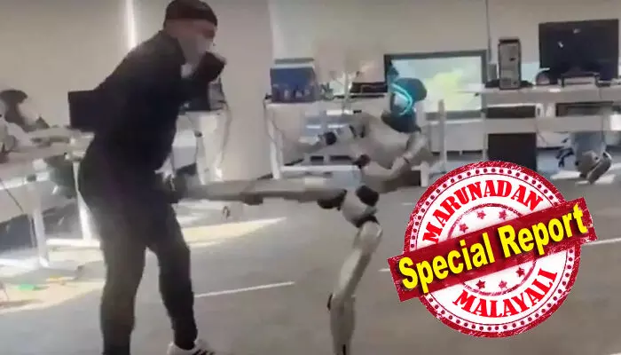 ചലനങ്ങൾ അനുകരിക്കുന്നതിനിടെ ഒരു ഹ്യൂമനോയിഡ് റോബോട്ട് യുവാവിനെ ജനനേന്ദ്രിയത്തിൽ ചവിട്ടുന്നതിന്റെ ദൃശ്യങ്ങൾ സമൂഹമാധ്യമങ്ങളിൽ വൈറലായിരിക്കുകയാണ്. വേദന കൊണ്ട് കുനിഞ്ഞുപോയ യുവാവിനെ റോബോട്ടും അതേപടി അനുകരിക്കുന്നതും വീഡിയോയിലുണ്ട്. സാങ്കേതികവിദ്യ മനുഷ്യന് തന്നെ അപ്രതീക്ഷിതമായി തിരിച്ചടിയാകുന്നതിന്റെ തമാശ നിറഞ്ഞ രൂപകമായി ഈ സംഭവം വ്യാപകമായി ചർച്ചയാവുകയാണ്.