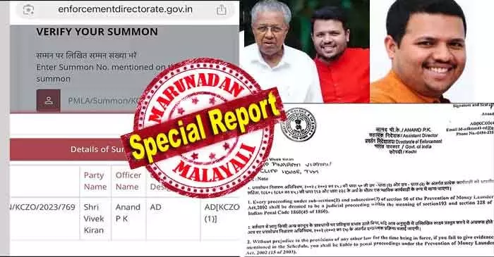 മകന്റെ സമന്സ് പിണറായി സിപിഎമ്മിനെ പോലും അറിയിച്ചില്ല; വിവേക് കിരണിനെ ഇഡി ചോദ്യം ചെയ്യാന് വിളിപ്പിച്ചിട്ടും അക്കാര്യം മുഖ്യമന്ത്രി എന്തുകൊണ്ട് രഹസ്യമാക്കി വച്ചെന്ന ചര്ച്ചയും സജീവം; ആ സമന്സ് അയച്ചത് പ്രതികളുടെ മൊഴിയുടെ അടിസ്ഥാനത്തില്; ആ സമന്സ് ആവിയായതും അജ്ഞാതം