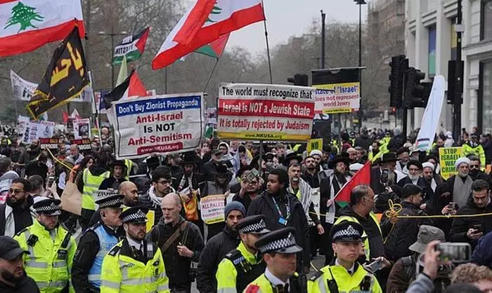 ലണ്ടന് തെരുവില് വീണ്ടും 'ഇറാന് അനുകൂലികളുടെ' പ്രതിഷേധം; തടയാനാവാതെ ഷബാന മഹ്മൂദ്