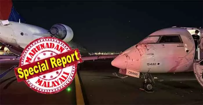 കൂട്ടിയിടിക്കു പിന്നാലെ വിമാനത്തിന്റെ ചിറക് വേര്പ്പെട്ടു; ലാന്ഡ് ചെയ്യുന്ന വിമാനത്തിലേക്ക് പാര്ക്ക് ചെയ്യാന് ഗേറ്റിലേക്കു പോകുകയായിരുന്ന വിമാനം ഇടിച്ചുകയറി; ന്യുയോര്ക്ക് എയര്പോര്ട്ടില് സംഭവിച്ചത്