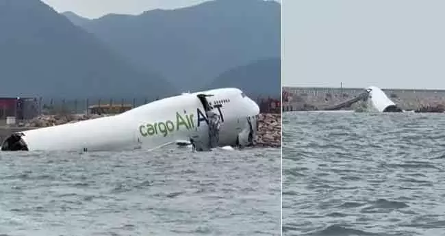 വിമാനം കടലില് ഭാഗികമായി മുങ്ങിക്കിടക്കുന്ന ചിത്രം പുറത്തുവന്നിട്ടുണ്ട്. അതേസമയം, വിമാനത്തിലുണ്ടായിരുന്ന നാല് ജീവനക്കാരെ രക്ഷപ്പെടുത്തിയെന്ന് ഹോങ്കോംഗ് വിമാനത്താവളം പ്രസ്താവനയില് അറിയിച്ചു. അപകടത്തെ തുടര്ന്ന്, ഹോങ്കോംഗ് അന്താരാഷ്ട്ര വിമാനത്താവളത്തിന്റെ വടക്കന് റണ്വേ അപകടത്തെ തുടര്ന്ന് അടച്ചിട്ടിരിക്കുകയാണ്. അതേസമയം തെക്ക്, മധ്യ റണ്വേകള് തുടര്ന്നും പ്രവര്ത്തിക്കുമെന്ന് വിമാനത്താവള അധികൃതര് വ്യക്തമാക്കി.