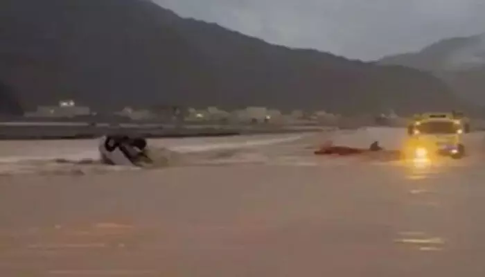 മുസന്ദം ഗവർണറേറ്റിലെ ഖസബ് വിലായത്തിലാണ് സംഭവം നടന്നത്. കനത്ത മഴയെത്തുടർന്ന് വാദികൾ നിറഞ്ഞൊഴുകുന്ന സാഹചര്യമായിരുന്നു അവിടെയുണ്ടായിരുന്നത്. വെള്ളപ്പൊക്കത്തിൽപ്പെട്ട ഡ്രൈവറെ സിവിൽ ഡിഫൻസ് ആൻഡ് ആംബുലൻസ് അതോറിറ്റി (CDAA) ഉദ്യോഗസ്ഥരാണ് സാഹസികമായി രക്ഷപ്പെടുത്തിയത്. ഇയാൾക്ക് ഗുരുതരമായ പരിക്കുകളൊന്നുമില്ലെന്ന് അധികൃതർ അറിയിച്ചു.